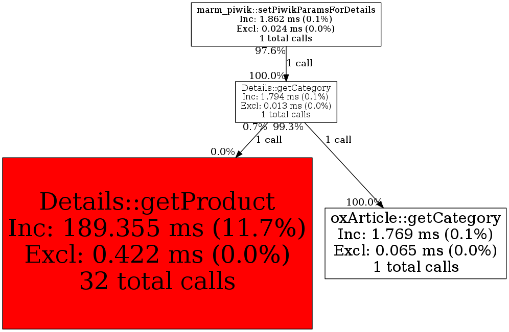 | Details::getCategory | 1 | 11.1% | 1,794 | 0.1% | 0 | 0.0% | 70,624 | 0.3% | 46,664 | 0.2% |