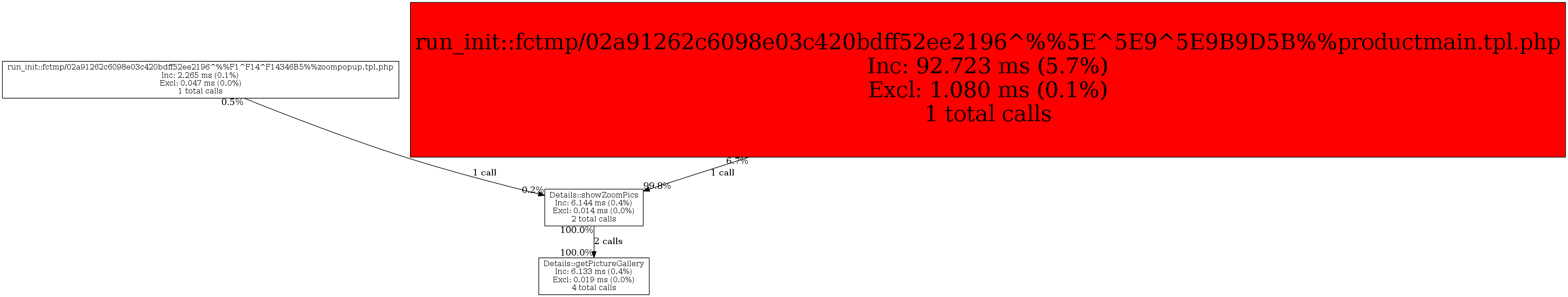 | Details::showZoomPics | 2 | 20.0% | 6,144 | 0.4% | 4,000 | 0.6% | 46,264 | 0.2% | 0 | 0.0% |