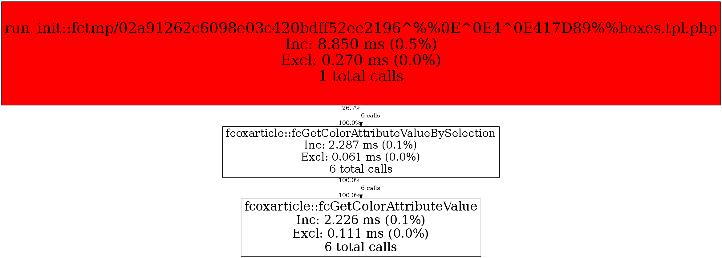 | fcoxarticle::fcGetColorAttributeValueBySelection | 6 | 33.3% | 2,287 | 0.1% | 0 | 0.0% | 20,632 | 0.1% | 1,504 | 0.0% |