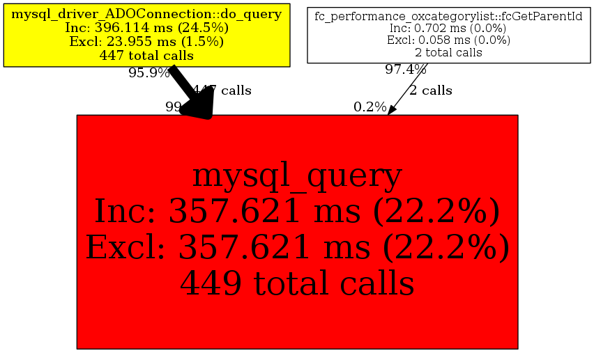 | mysql_driver_ADOConnection::do_query | 447 | 99.6% | 356,994 | 99.8% | 32,001 | 100.0% | 1,675,024 | 99.7% | 365,304 | 99.2% |