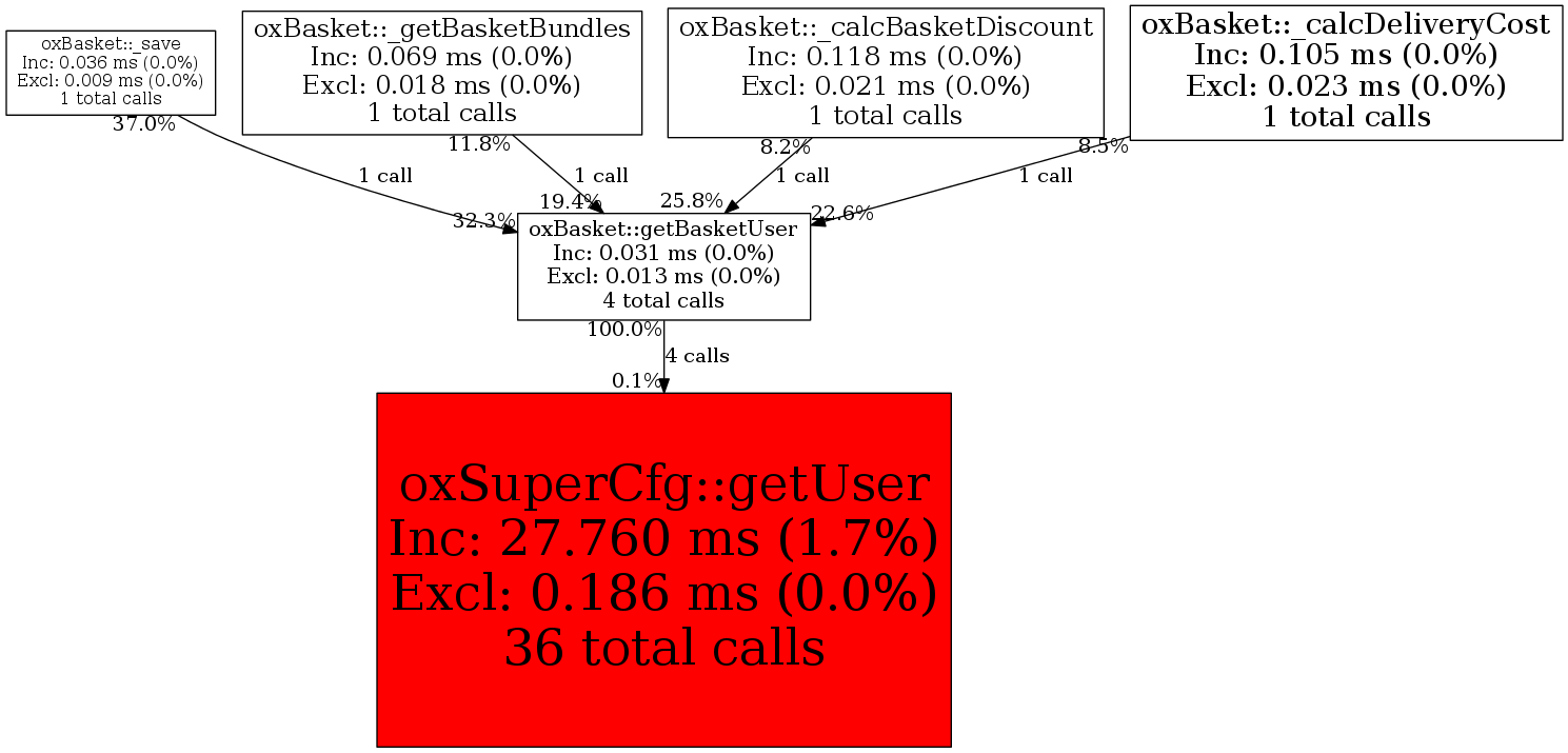 | oxBasket::getBasketUser | 4 | 28.6% | 31 | 0.0% | 0 | 0.0% | 6,280 | 0.0% | 5,208 | 0.0% |