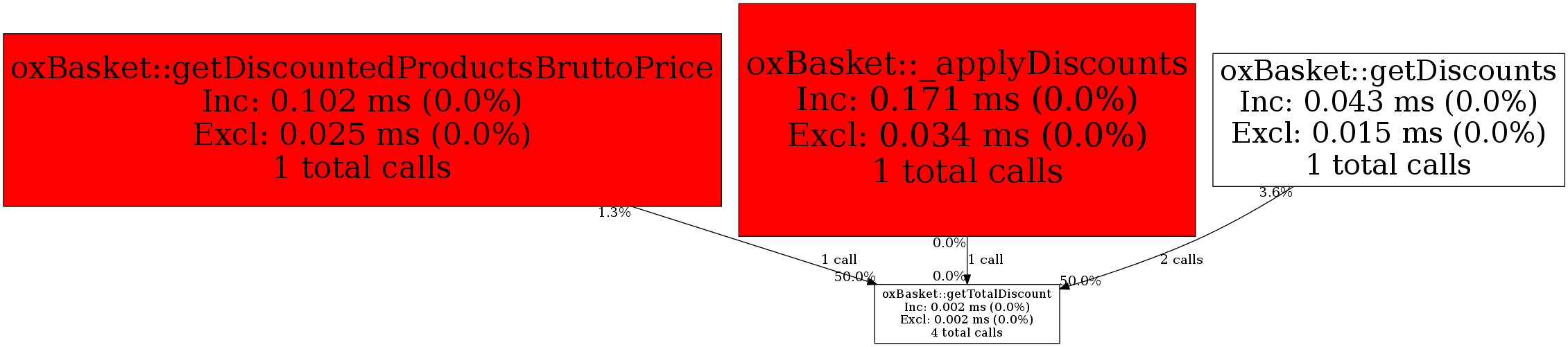| oxBasket::getDiscountedProductsBruttoPrice | 1 | 25.0% | 1 | 50.0% | 0 | N/A% | 1,128 | 33.7% | 1,128 | 33.7% |