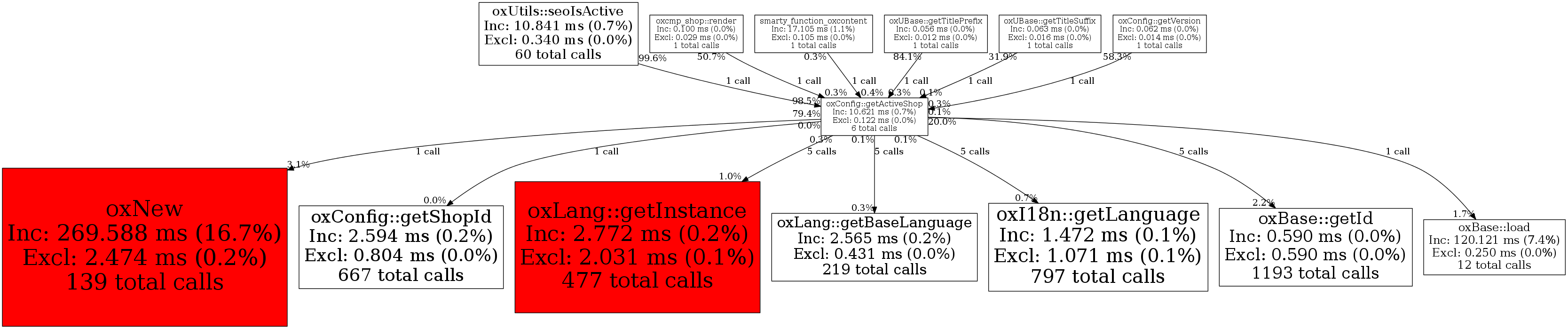 | oxLang::getInstance | 5 | 21.7% | 29 | 0.3% | 0 | 0.0% | 1,104 | 0.6% | 1,264 | 0.8% |