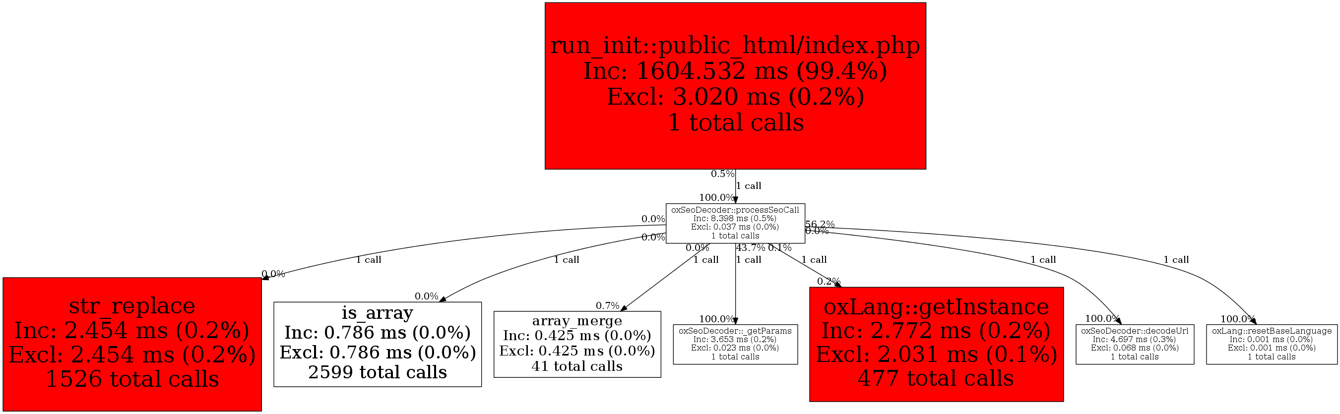 | oxSeoDecoder::processSeoCall | 1 | 7.1% | 8,398 | 0.5% | 4,000 | 0.6% | 255,712 | 1.2% | 253,088 | 1.1% |