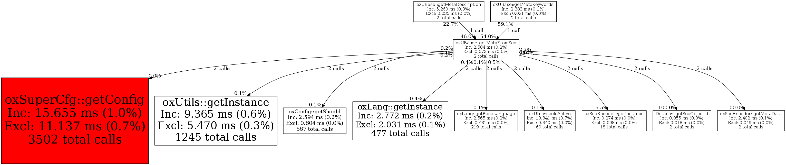| oxSuperCfg::getConfig | 2 | 11.1% | 6 | 0.2% | 0 | N/A% | 1,264 | 5.4% | 0 | 0.0% |