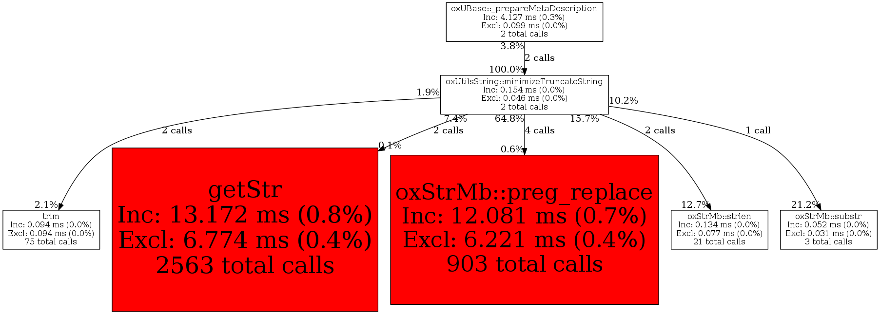 | oxUtilsString::minimizeTruncateString | 2 | 10.5% | 154 | 0.0% | 0 | 0.0% | 9,576 | 0.0% | 7,888 | 0.0% |
