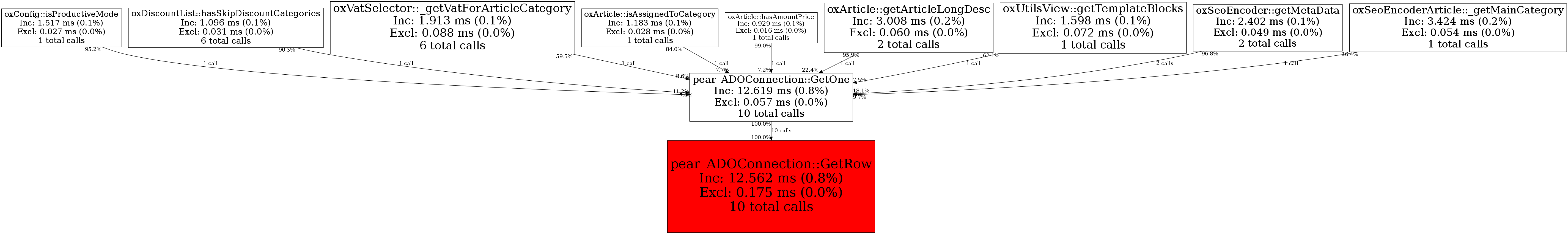 | pear_ADOConnection::GetRow | 10 | 100.0% | 12,562 | 99.5% | 0 | N/A% | 14,880 | 58.6% | 51,128 | 98.7% |