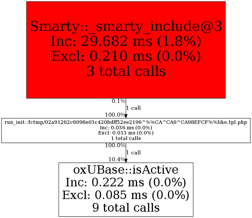 | Smarty::_smarty_include@3 | 1 | 100.0% | 36 | 100.0% | 0 | N/A% | 2,744 | 100.0% | 0 | N/A% |