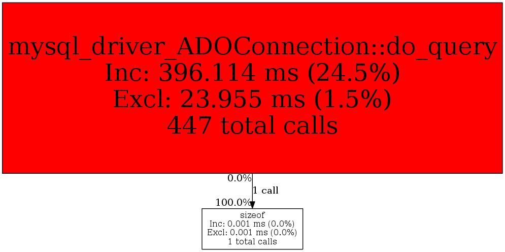 | mysql_driver_ADOConnection::do_query | 1 | 100.0% | 1 | 100.0% | 0 | N/A% | 1,128 | 100.0% | 568 | 100.0% |