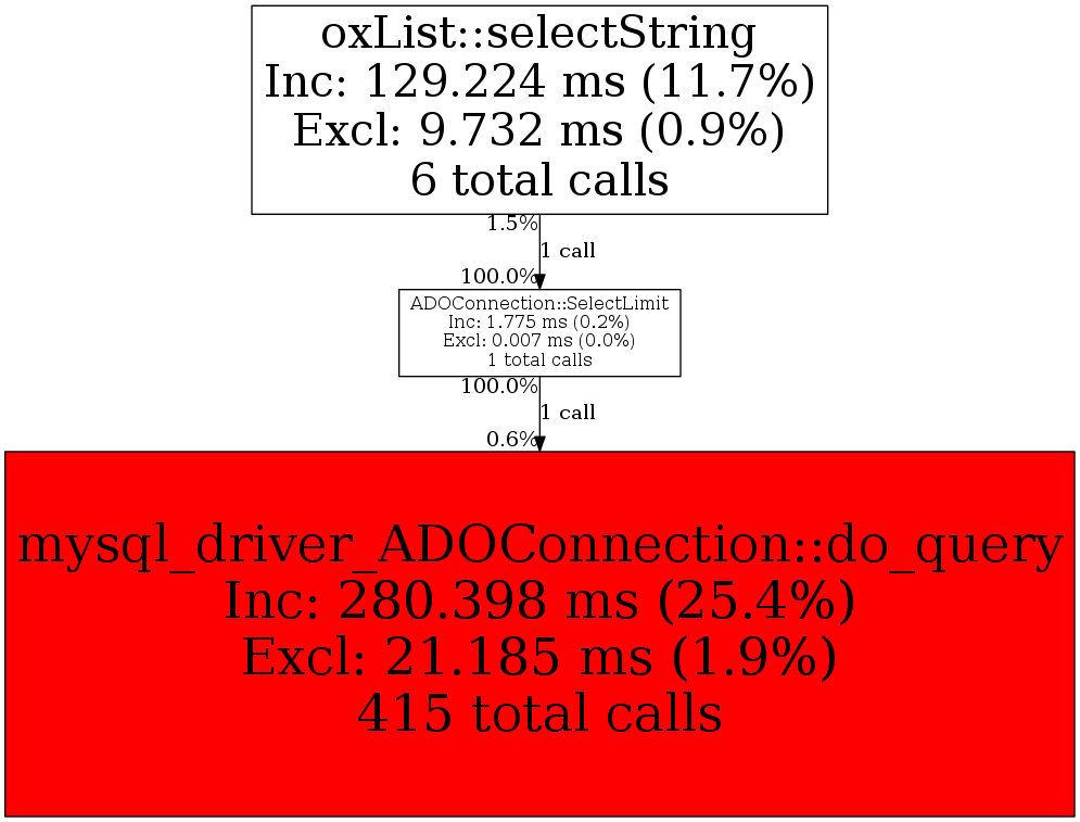 | mysql_driver_ADOConnection::do_query | 1 | 100.0% | 1,768 | 99.6% | 0 | N/A% | 24,088 | 104.0% | 18,720 | 95.8% |