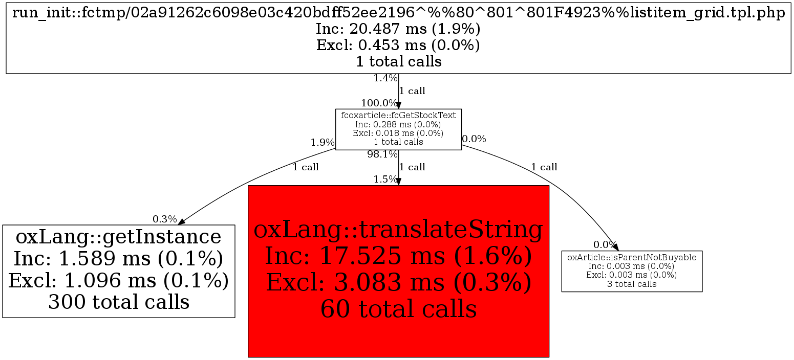 | fcoxarticle::fcGetStockText | 1 | 10.0% | 288 | 0.0% | 0 | 0.0% | 7,296 | 0.0% | 0 | 0.0% |