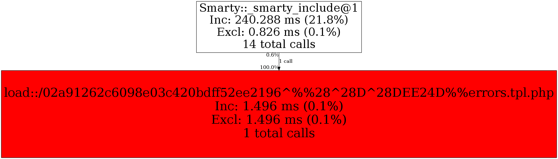 | Smarty::_smarty_include@1 | 1 | 100.0% | 1,496 | 100.0% | 0 | N/A% | 3,336 | 100.0% | 0 | N/A% |