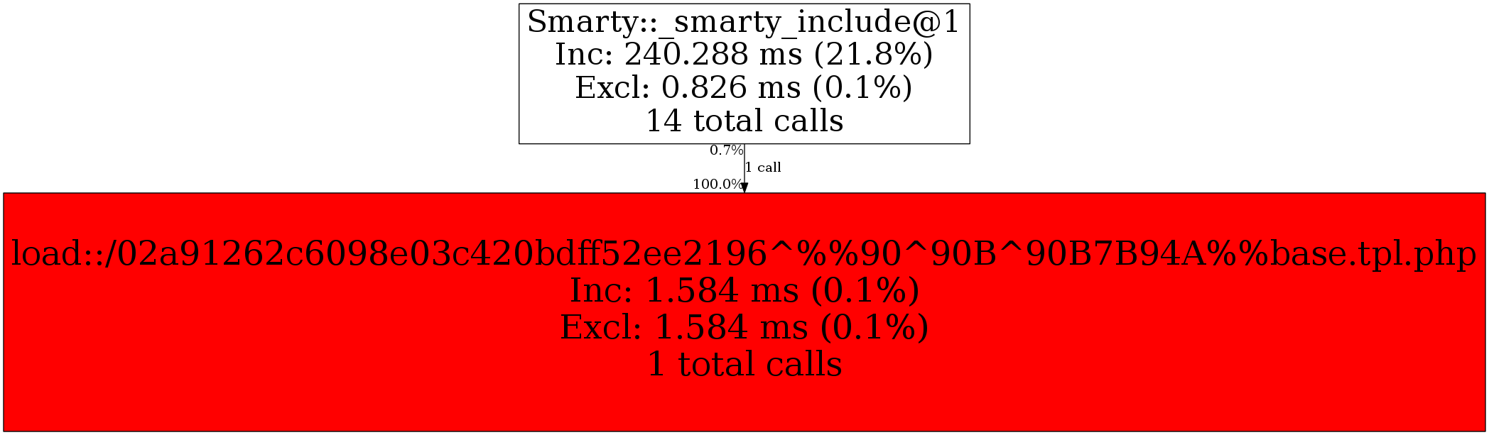 | Smarty::_smarty_include@1 | 1 | 100.0% | 1,584 | 100.0% | 0 | N/A% | 3,336 | 100.0% | 0 | N/A% |