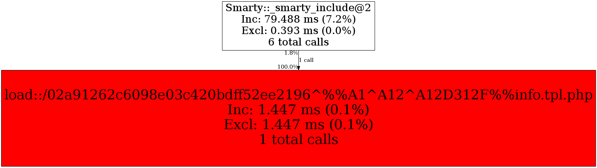 | Smarty::_smarty_include@2 | 1 | 100.0% | 1,447 | 100.0% | 0 | N/A% | 3,336 | 100.0% | 0 | N/A% |