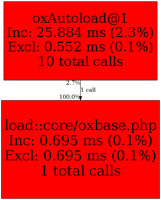 | oxAutoload@1 | 1 | 100.0% | 695 | 100.0% | 0 | N/A% | 53,960 | 100.0% | 52,168 | 100.0% |