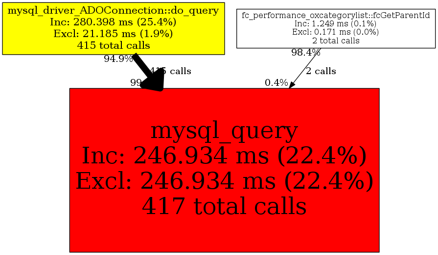 | mysql_driver_ADOConnection::do_query | 415 | 99.5% | 245,873 | 99.6% | 32,001 | 100.0% | 1,375,272 | 99.6% | 200,872 | 99.1% |