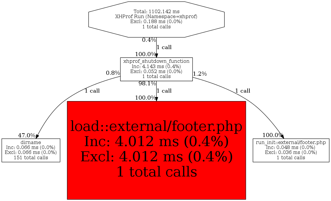 | xhprof_shutdown_function | 1 | 11.1% | 4,143 | 0.4% | 0 | 0.0% | 14,616 | 0.1% | 0 | 0.0% |