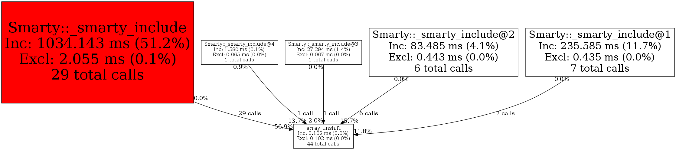 | Smarty::_smarty_include@4 | 1 | 2.3% | 14 | 13.7% | 0 | N/A% | 1,224 | 11.3% | 0 | N/A% |