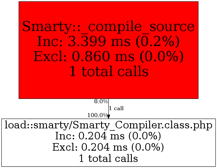 | Smarty::_compile_source | 1 | 100.0% | 204 | 100.0% | 0 | N/A% | 106,144 | 100.0% | 57,952 | 100.0% |