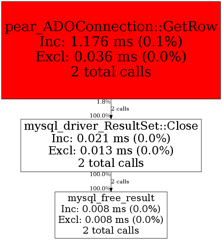 pear_ADOConnection::GetRow2 100.0% 21 100.0% 0 N/A% -1,640 -100.0% 1,296 100.0%