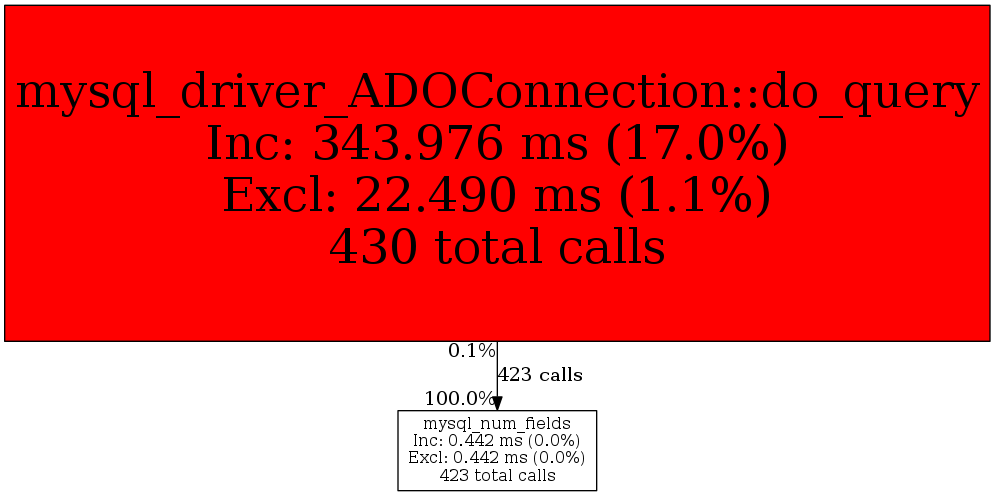 | mysql_driver_ADOConnection::do_query | 423 | 100.0% | 442 | 100.0% | 0 | N/A% | 1,112 | 100.0% | 984 | 100.0% |