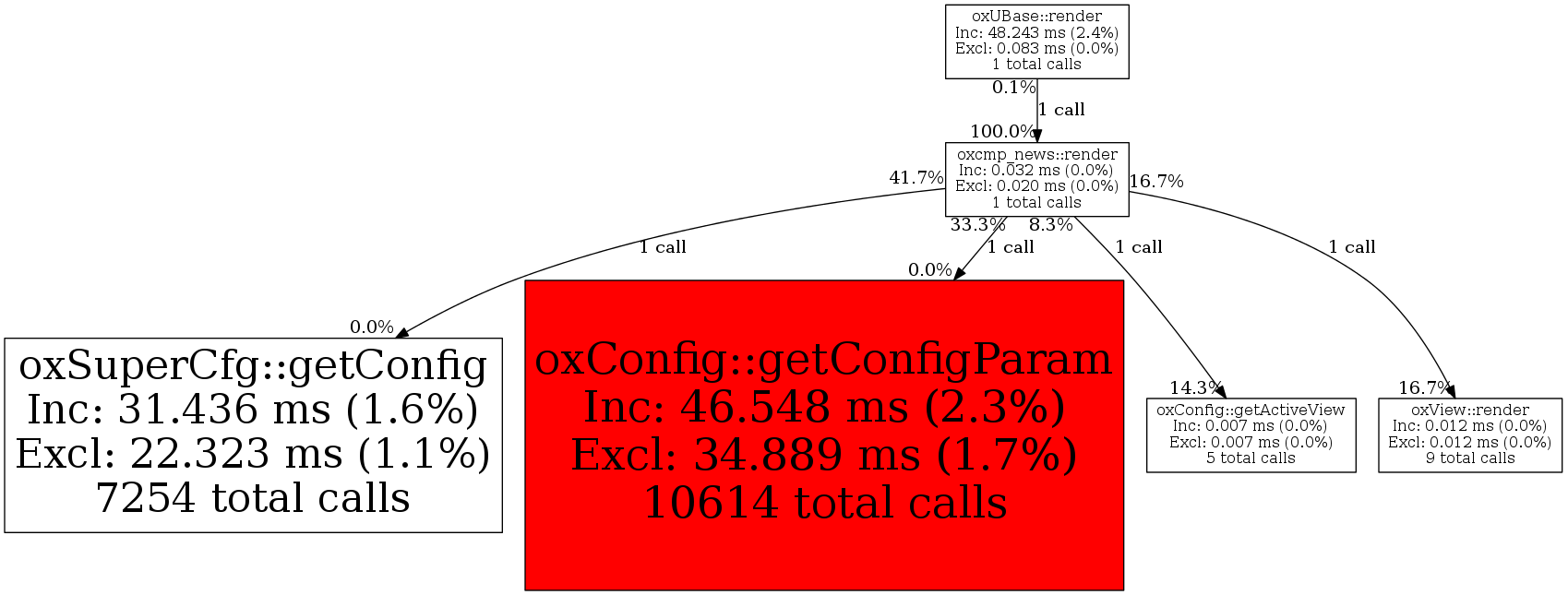 | oxcmp_news::render | 1 | 9.1% | 32 | 0.0% | 0 | 0.0% | 7,248 | 0.0% | 6,328 | 0.0% |
