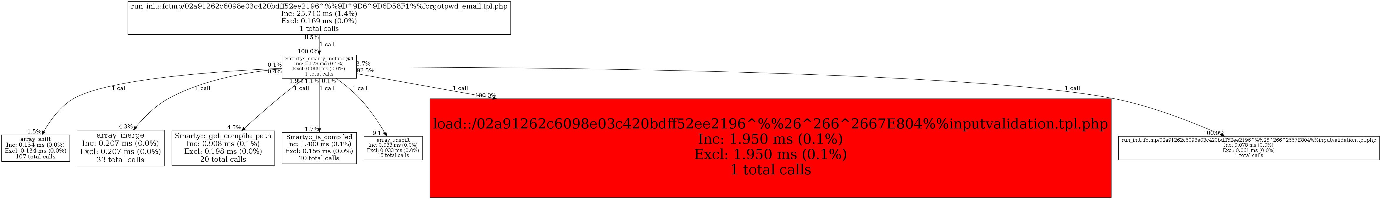 | Smarty::_smarty_include@4 | 1 | 2.4% | 2,173 | 0.1% | 0 | 0.0% | 25,160 | 0.1% | 0 | 0.0% |