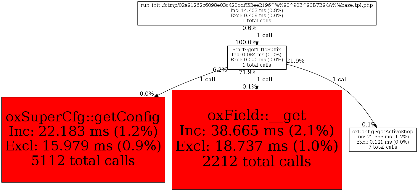 | Start::getTitleSuffix | 1 | 2.7% | 84 | 0.0% | 0 | 0.0% | 6,192 | 0.0% | 0 | 0.0% |