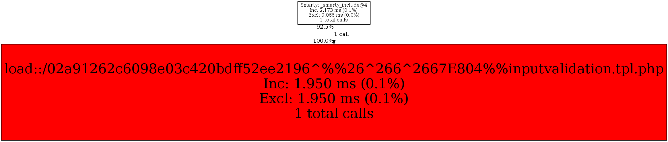 | Smarty::_smarty_include@4 | 1 | 100.0% | 1,950 | 100.0% | 0 | N/A% | 3,384 | 100.0% | 0 | N/A% |