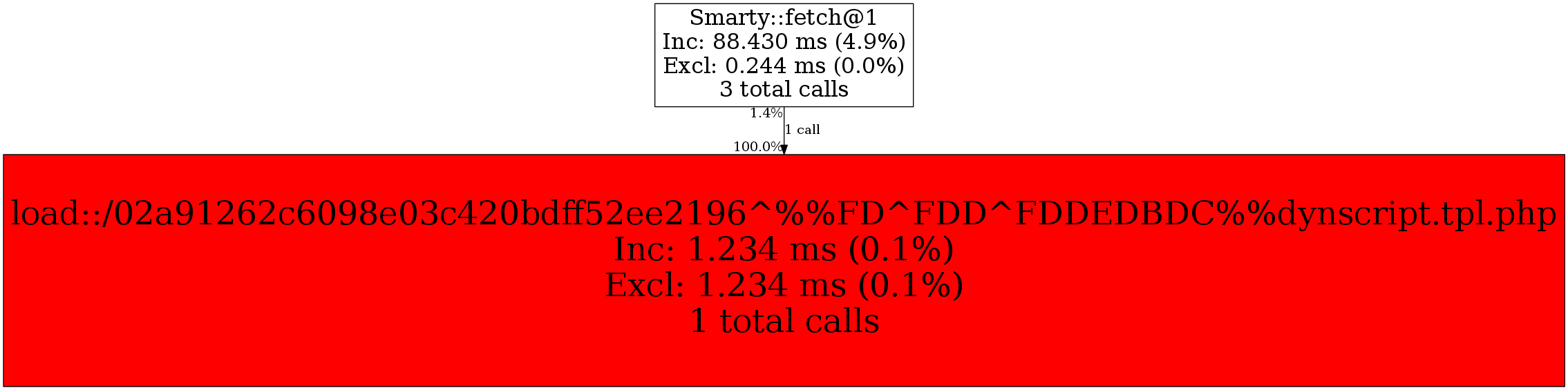 | Smarty::fetch@1 | 1 | 100.0% | 1,234 | 100.0% | 0 | N/A% | 3,328 | 100.0% | 0 | N/A% |