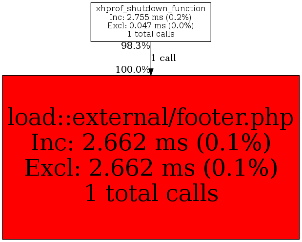 | xhprof_shutdown_function | 1 | 100.0% | 2,662 | 100.0% | 0 | N/A% | 2,968 | 100.0% | 0 | N/A% |