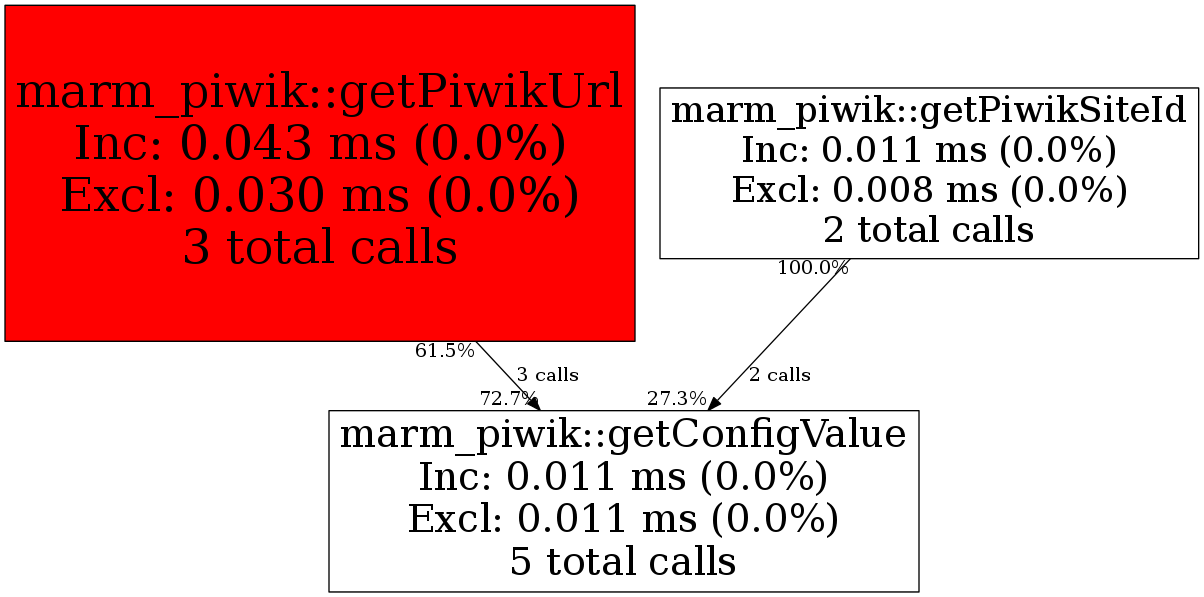 | marm_piwik::getConfigValue | 5 | 13.2% | 11 | 0.0% | 0 | 0.0% | 2,224 | 0.0% | 0 | 0.0% |