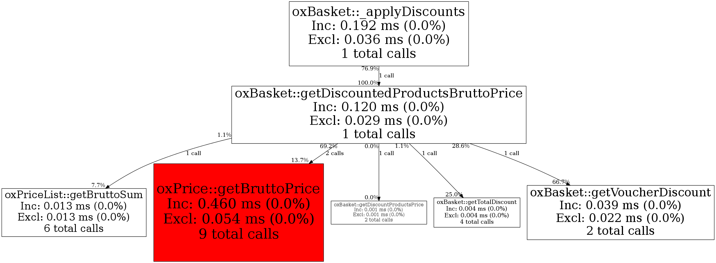 | oxBasket::getDiscountedProductsBruttoPrice | 1 | 2.5% | 120 | 0.0% | 0 | 0.0% | 12,000 | 0.0% | 11,488 | 0.0% |