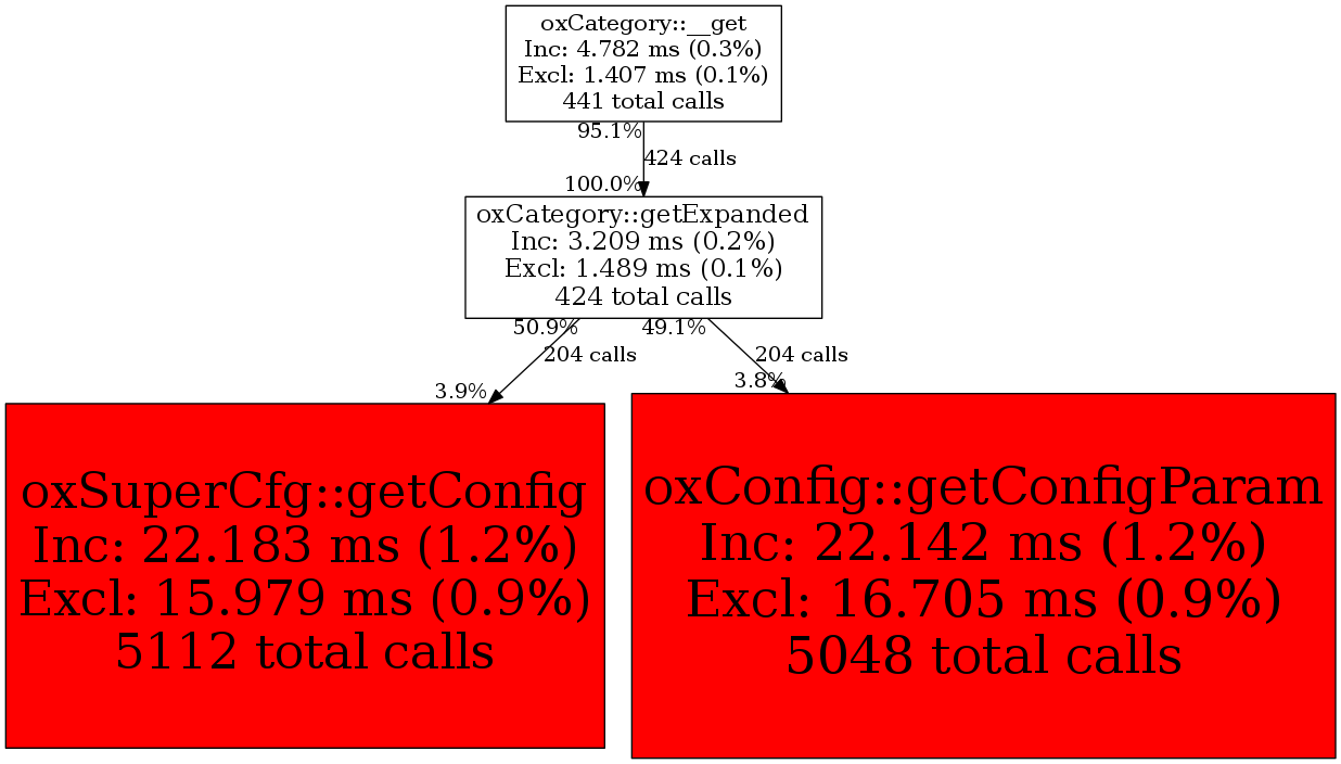 | oxCategory::getExpanded | 424 | 49.0% | 3,209 | 0.2% | 0 | 0.0% | 20,472 | 0.1% | 4,272 | 0.0% |