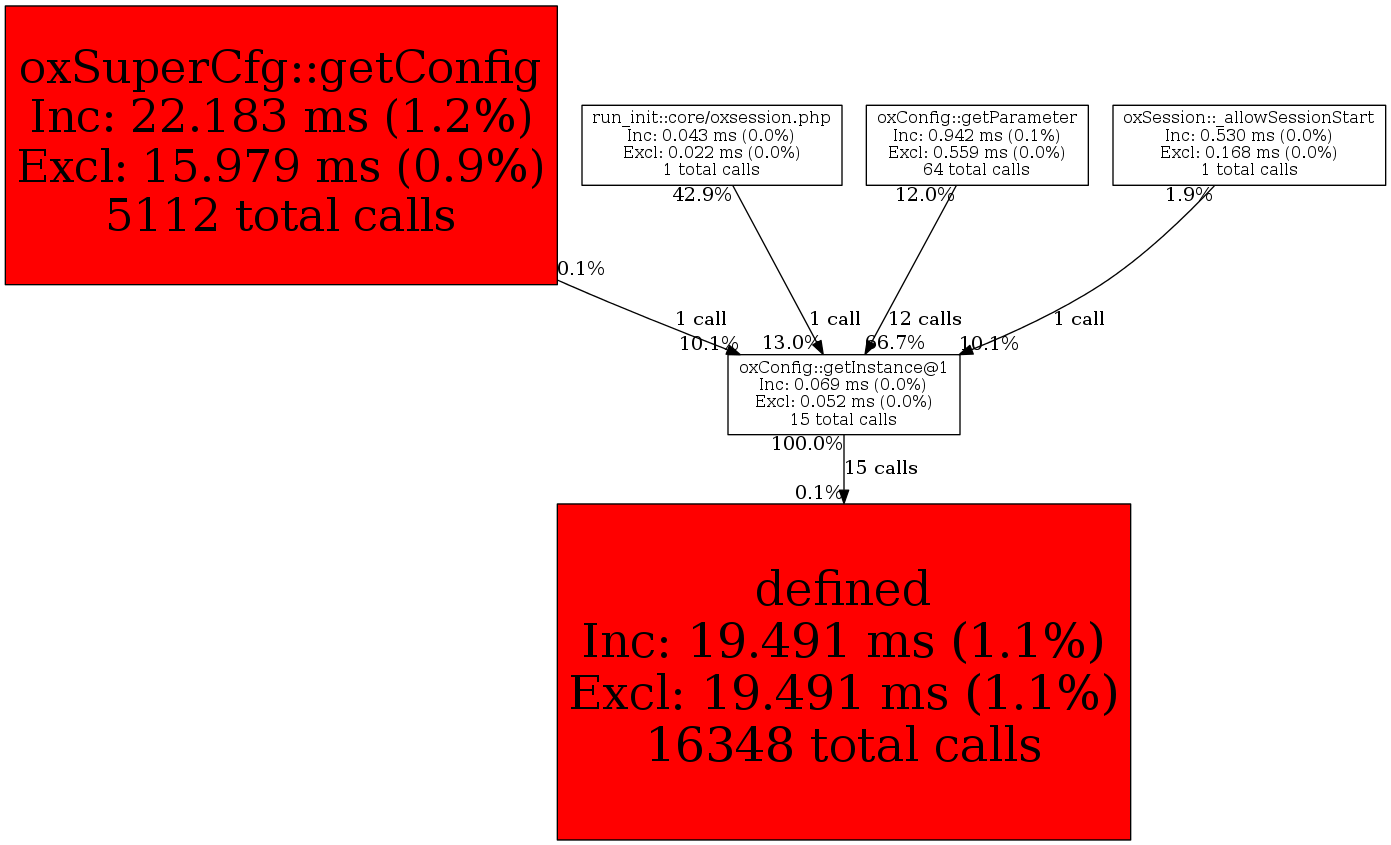 | oxConfig::getInstance@1 | 15 | 23.8% | 69 | 0.0% | 0 | 0.0% | 5,944 | 0.0% | 4,864 | 0.0% |