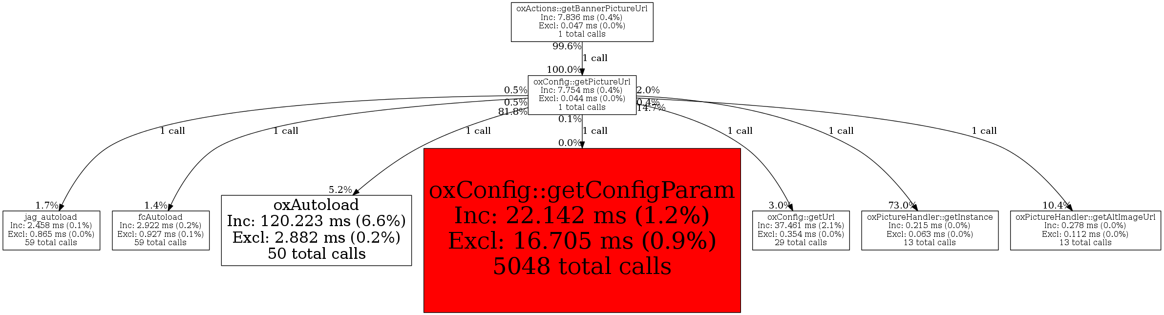 | oxConfig::getPictureUrl | 1 | 2.4% | 7,754 | 0.4% | 0 | 0.0% | 38,736 | 0.2% | 34,632 | 0.1% |