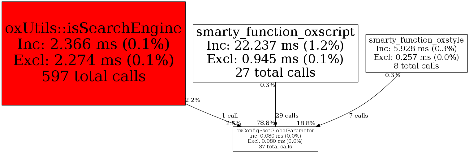 | oxConfig::setGlobalParameter | 37 | 52.9% | 80 | 0.0% | 0 | 0.0% | -19,104 | -0.1% | 2,488 | 0.0% |