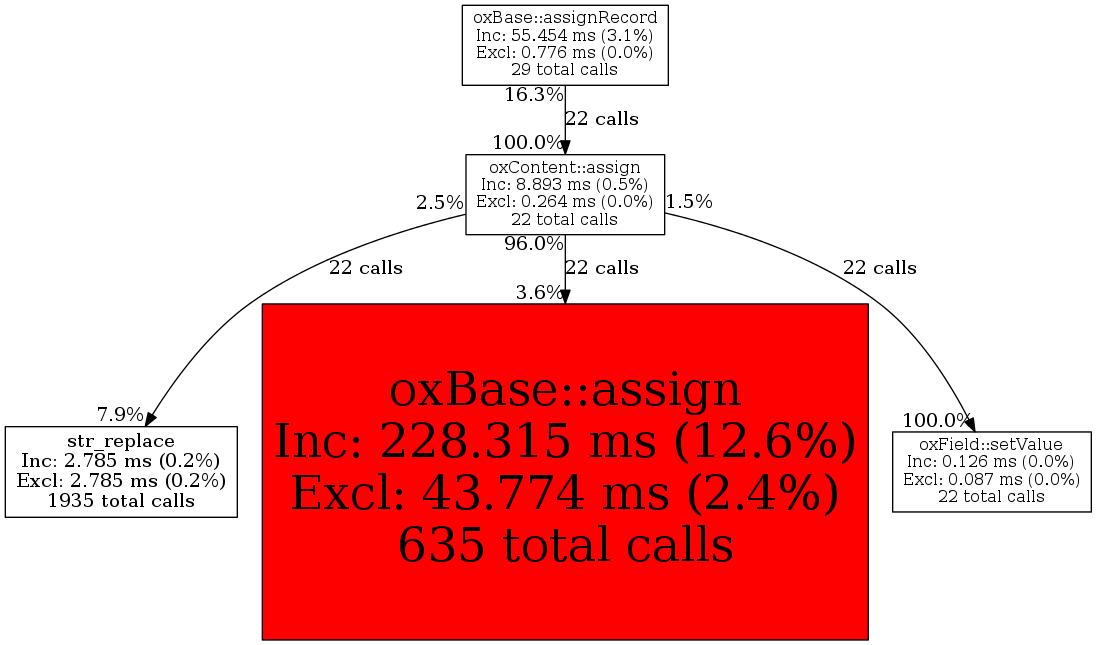 | oxBase::assign | 22 | 33.3% | 8,284 | 93.2% | 12,001 | 100.0% | 155,624 | 50.3% | 5,600 | 4.1% |