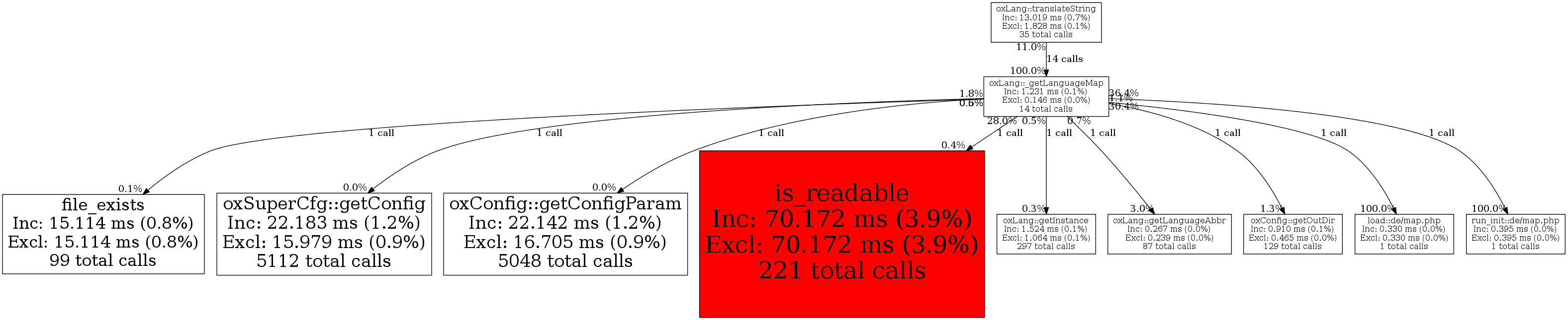 | oxLang::translateString | 14 | 100.0% | 1,231 | 100.0% | 0 | N/A% | 280,720 | 100.0% | 272,512 | 100.0% |