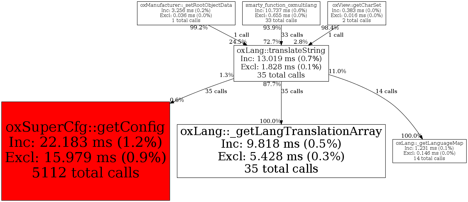 | oxLang::translateString | 35 | 23.0% | 13,019 | 0.7% | 12,002 | 1.3% | 673,648 | 2.7% | 1,183,152 | 4.7% |