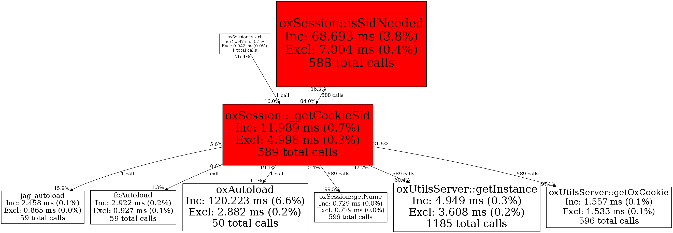 | oxSession::_getCookieSid | 589 | 24.6% | 11,989 | 0.7% | 12,001 | 1.3% | 85,488 | 0.3% | 33,792 | 0.1% |