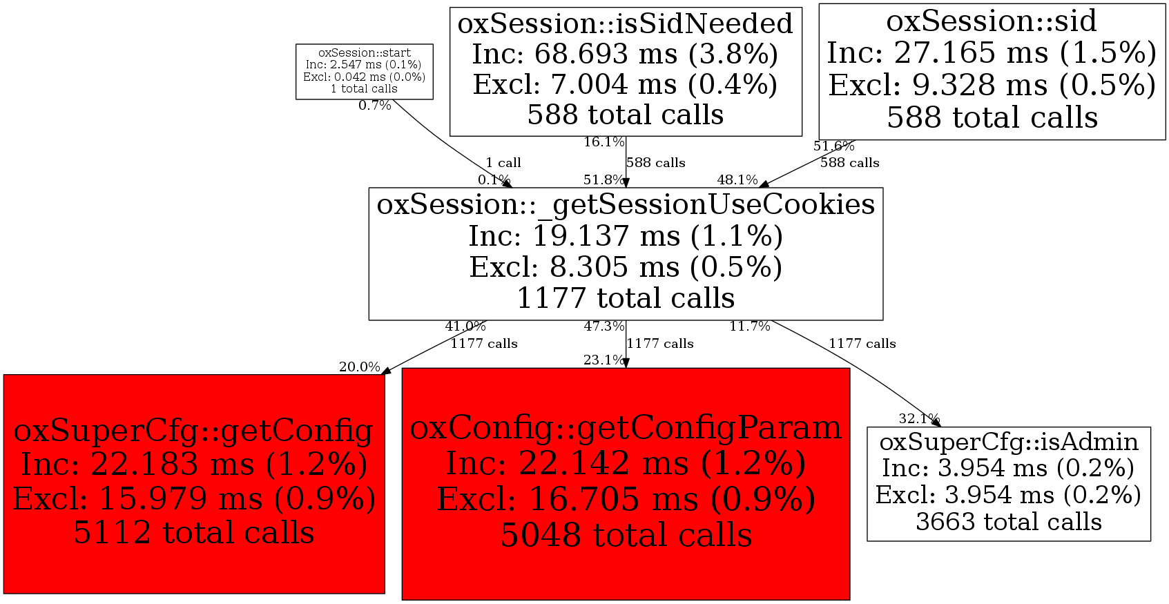 | oxSession::start | 1 | 0.1% | 18 | 0.1% | 0 | 0.0% | 5,784 | 5.7% | 3,584 | 60.0% |