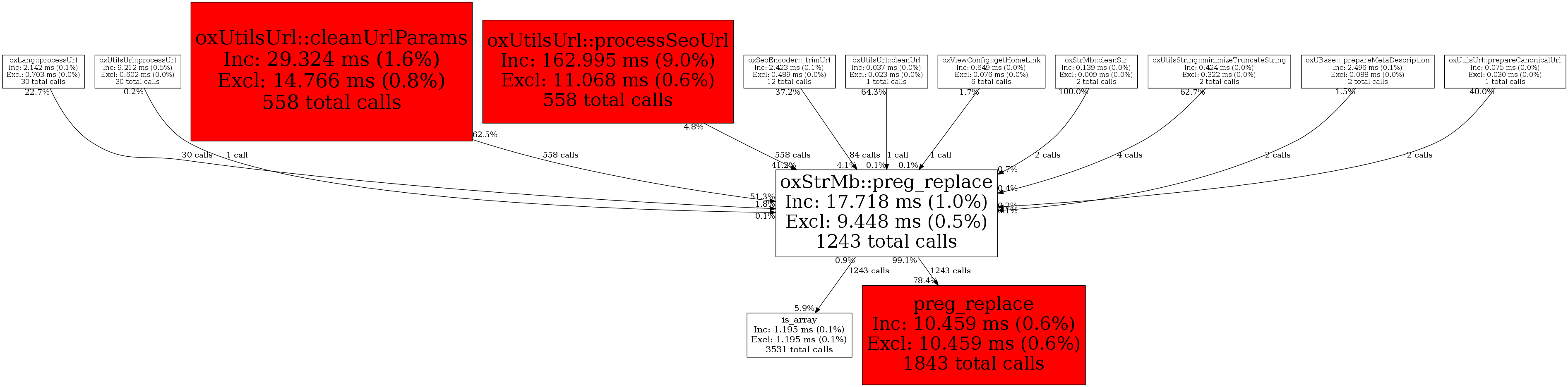 | oxSeoEncoder::_trimUrl | 84 | 6.8% | 720 | 4.1% | 0 | 0.0% | 16,112 | 6.6% | 2,360 | 6.2% |