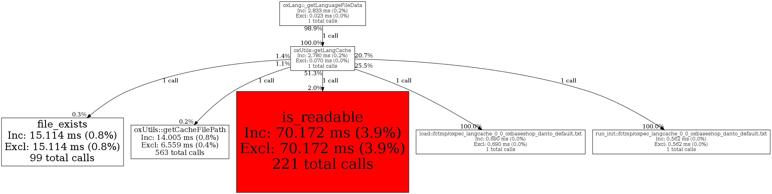 | oxUtils::getLangCache | 1 | 2.6% | 2,780 | 0.2% | 0 | 0.0% | 364,408 | 1.5% | 341,944 | 1.4% |