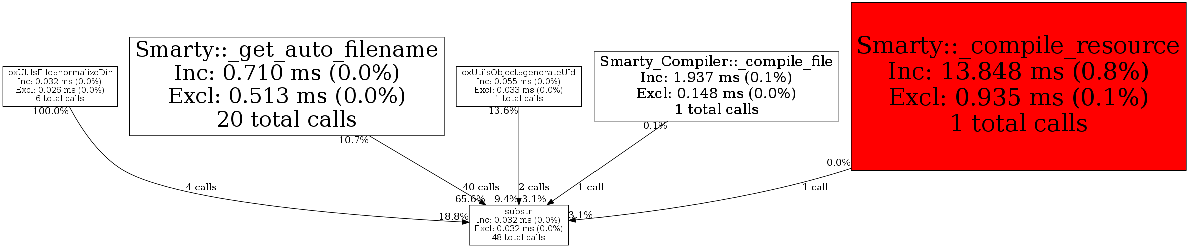 | Smarty_Compiler::_compile_file | 1 | 2.1% | 1 | 3.1% | 0 | N/A% | 1,152 | 13.7% | 128 | 5.0% |