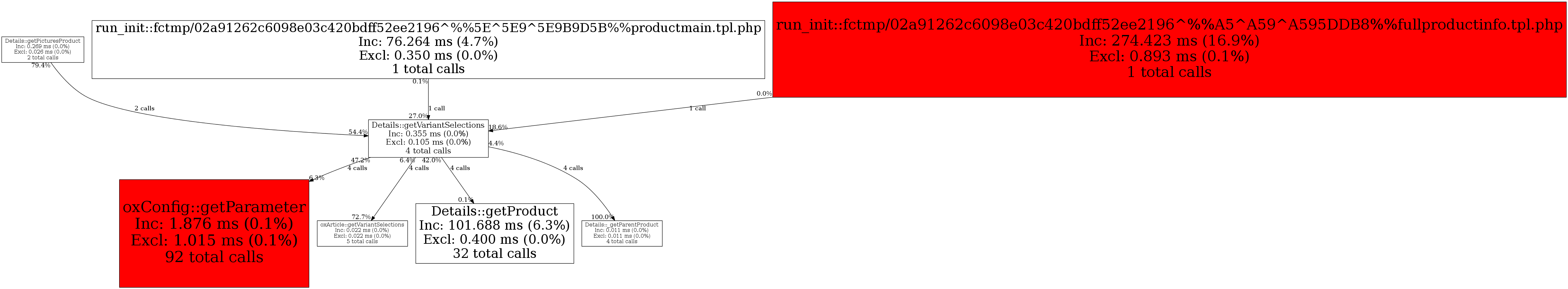 | Details::getVariantSelections | 4 | 15.4% | 355 | 0.0% | 0 | 0.0% | 9,608 | 0.0% | 6,312 | 0.0% |