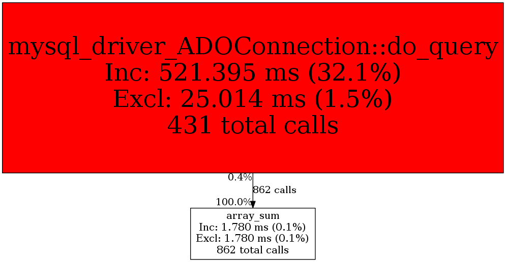 | mysql_driver_ADOConnection::do_query | 862 | 100.0% | 1,780 | 100.0% | 0 | N/A% | 1,104 | 100.0% | 1,152 | 100.0% |