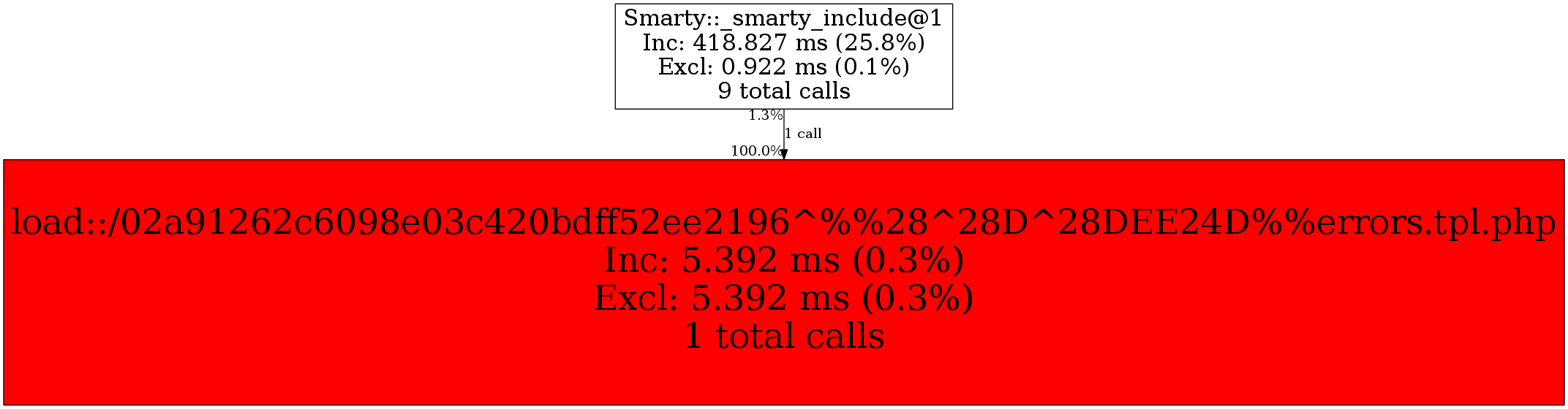 | Smarty::_smarty_include@1 | 1 | 100.0% | 5,392 | 100.0% | 0 | N/A% | 3,336 | 100.0% | 0 | N/A% |