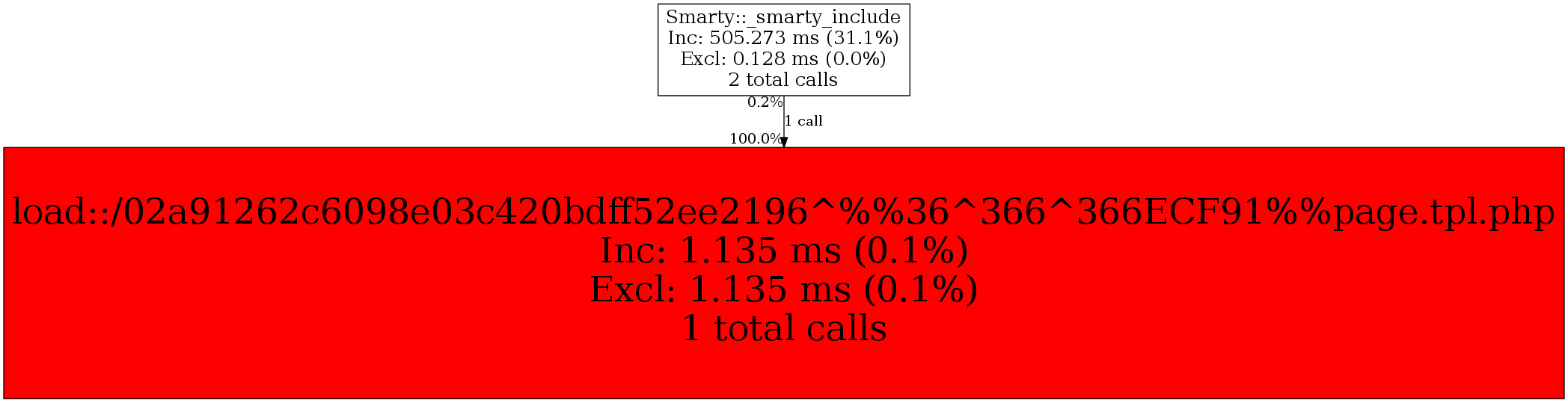 | Smarty::_smarty_include | 1 | 100.0% | 1,135 | 100.0% | 0 | N/A% | 3,336 | 100.0% | 0 | N/A% |