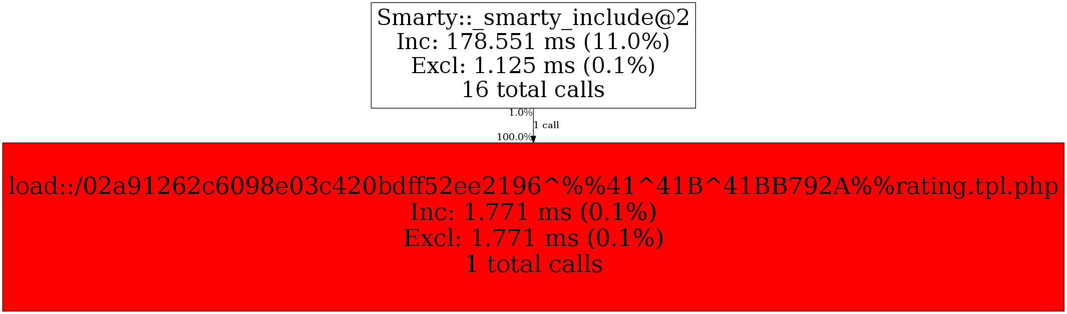 | Smarty::_smarty_include@2 | 1 | 100.0% | 1,771 | 100.0% | 0 | N/A% | 3,336 | 100.0% | 0 | N/A% |